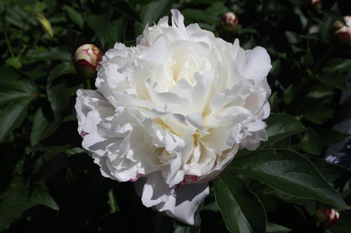 С какво се комбинира едно прекрасно растение? С други сортове божури, с карамфили, хехера, ириси, камбани, лилейници, макове, орлови нокти, храсти на берберис. Основното е, че съседите на благородна култура имат цветя, които са хармонични или контрастират с бял тон: кърваво червено, бордо, череша, люляк, лилаво, алено, розово. Градински чай, туя, чемерика, пеларгония, астилба, петунии, циния също ще направят добра компания на храста. Shirley Temple може да се използва за рязане. Цветята му стоят във водата дълго време, като остават толкова привлекателни, колкото когато ги режете. Възхитителни букети се правят от снежнобяли пъпки.
