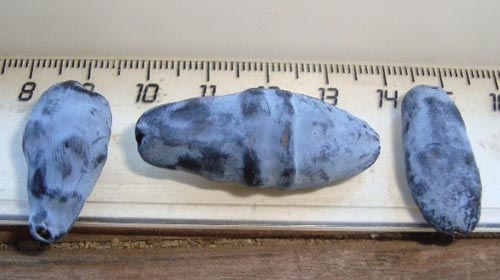 La taille est grande, de 0,8 à 1 gramme de poids. La forme est légèrement irrégulière, oblongue, elliptique, ressemblant à une minuscule soucoupe à l'extrémité. Au début, la baie est gris jaunâtre, mais au stade de la maturité, elle est presque noire, avec une floraison bleuâtre caractéristique. Le goût de la pulpe est doux, rafraîchissant, la peau est très fine, presque invisible dans la bouche. Ce facteur agréable s'avère également être un inconvénient de la variété: les fruits sont presque impossibles à transporter et à stocker.