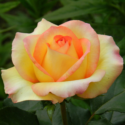 A hangulat nagyon népszerű a virágárusok körében. Ez nem meglepő, mert a francia fajta nagyon dekoratív megjelenésű, főleg a sárga, narancssárga színű, nagy virágok jelenléte miatt. A virágzó rügy átmérője 8-12 cm, a szirmok száma minden ilyen virágban eléri a 40 darabot. Széleik kissé kifelé görbülnek vörös-karmazsin vagy élénk rózsaszínűek, és ez a határ nem kevésbé a virágok napos tónusainál vonzza a növényre a figyelmet. Romantikus értelemben a virágszirmok színe borostyán-barack és áfonyapír. A növény rügyei magasak, serlegek. A kultúra puha, csodálatos illattal tölti meg a körülötte lévő levegőt, amelyben egyértelműen kitalálják a gyümölcsös jegyeket.