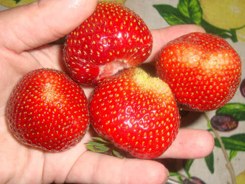 Ягодите узряват късно и много късно, плододаването започва около края на юли и може да започне по-късно. По този начин основната реколта започва около 20-25 дни след Elsanta и 12-14 дни по-късно от Флоренция. Плодът в нашата героиня е доста компресиран, тя се отказва много бързо от цялата реколта. В допълнение, узряването се извършва приятелски и дори недозрелите плодове все още могат да бъдат безопасно събрани и изпратени на пазара, тъй като те вече имат отличен вкус. По този начин Малвина е много привлекателна за мащабно отглеждане, прибирането на реколтата не се разтяга с времето и е доста плодоносно.