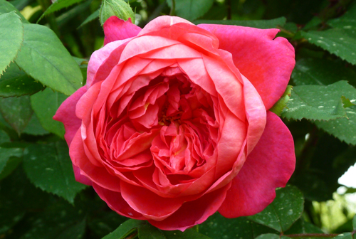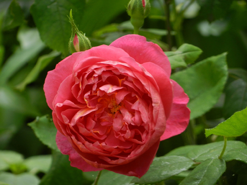Разкошното цвете на тази роза се състои от 41 или повече листенца, следователно принадлежи към плътно удвоените. Но въпреки големия брой листенца, отворената розетка изглежда много лека. Формата е с дълбока чаша, с дълбоко поставени венчелистчета. Но в процеса на разтваряне той се превръща в широка купа, докато по-дългите външни венчелистчета се огъват назад, а центърът е изпълнен с произволно разположени малки венчелистчета. При пълно разтваряне се вижда ярко жълт център, който създава невероятен цветен ефект, който кара цветето да изглежда осветено отвътре. Размерът на розетата е среден, от 10 до 12 см, но има информация, че понякога диаметърът на роза не надвишава 8 см. Цветът, според много розопроизводители, е нетипичен за повечето остини. Смелите червени тонове на венчелистчетата си играят с нюанси на оранжево-тухлена или бледо сьомга. С напредването на разтварянето цветовата схема преминава в пурпурен спектър.