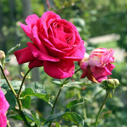 Big Purple е истинска красавица. Цветът на големите му двойни цветя се различава не само в сочни тонове, но и в способността да се променя под въздействието на атмосферните условия, в зависимост от района на отглеждане и сезона. Сянката на венчелистчетата може да бъде пурпурна, пурпурна, ярко лилава или да има наситен цвят на фуксия. Тази роза ще ви зарадва особено със своите цветове в сухо и прохладно лято. Плътните пъпки на цветната богиня цъфтят бавно и излъчват вълшебен, интензивен, но в същото време ненатрапчив аромат. Те развиват по един на всеки издънка и се състоят от 40 или повече листенца. Диаметърът на цветето варира от 10 до 12 cm.