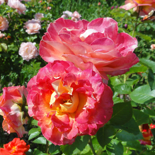 Декор Арлекиновите пъпки са малки, кръгли яйцевидни. Цветовете са полу-двойни, те се състоят от 17 - 25 венчелистчета, често със силно гофрирани, сякаш изтъркани, но следователно по-декоративни, ръбове. Размерът на цветето е доста голям - около 9 - 10 см. Пъпката, която започва да цъфти в началото дразни с жълт цвят, само плътно затворените връхчета са леко докоснати от розов оттенък. Но докато разтварянето продължава, започва истинска цветна феерия. Цветът на розата е двусмислен, огънатите назад венчелистчета са пурпурно-розови, докато външната им страна остава бледожълта. Оказва се истински хамелеон, цветът се променя от гледна точка и метеорологичните условия също му влияят. На етапа на пълно разтваряне, придобило форма на чаша, цветето изглежда много елегантно благодарение на яркия, може да се каже, неон, розово-пурпурен цвят и жълт център.