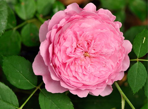Всяка издънка на аристократ е увенчана с голямо, до 12 см обиколка, плътно двойно с форма на чаша цвете. Често централната част на разцъфнала пъпка е на квадрат, с други думи, тя е разделена на 4 еднакви сектора. Цветята на благородното растение се поддържат в розови тонове, често с мек люляков оттенък. Всяко розово съцветие се формира от 70 заоблени средно големи венчелистчета. Външните листенца красиво оформят основната част на пъпката. Ароматът на цветята от този сорт е доста интензивен, чувствен и може да се определи като смес от аромати на смирна, анасон, розово масло, в които има плодови нотки на ягода, малина и сайдер. Ароматът, излъчван от трайното насаждение, е замаян, като чаша хубаво вино.