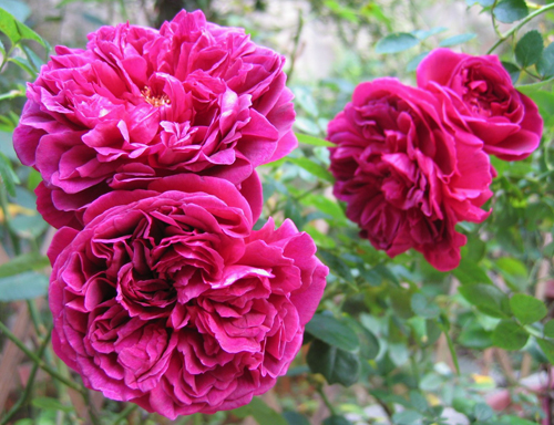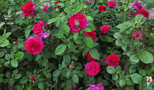 Не мога да си представя градината си без роза Уилям Шекспир. Цъфти непрекъснато през цялото лято. Отначало изцяло покрити с пъпки, а след това с единични цветя. Цветята са гъсто двойни и въпреки факта, че са огромни, клоните ги държат, без да падат на земята. Бушът се разпространява, широк, ще изглежда много добре не само в цветна градина, но дори и сам в средата на градината. Имам го да расте на полусянка, което има своите предимства, цветята не избледняват и издържат дълго време. Абсолютно непретенциозна роза, никога нищо не нарани. За зимата не забравяйте да наведете клоните и да ги покриете с агрофибър. Клоните на тази роза са тънки, храстът е малък и не е трудно да ги огънете. През пролетта може да се реже силно, тогава ще има по-малко цветя, но те ще бъдат много големи. Ако не го отрежете твърде радикално, всичко ще бъде осеяно с цветя, но в по-малък размер. Тази розетка не може да не ви хареса. Ярки пурпурни цветя, подобни на цветя на божур, се виждат отдалеч, така че това е декорация на всяка градина.