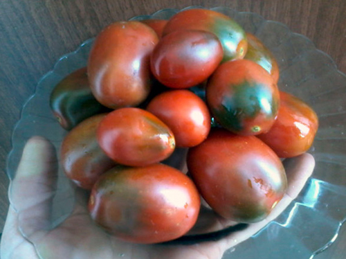 - добивът от продаваеми продукти е добър - 4,8 - 5,3 кг на 1 квадратен метър. При подходяща селскостопанска технология от 1 храст се събират 2,5 до 3 кг домати;