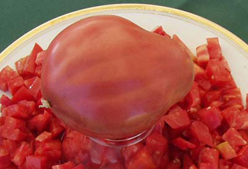 - Крушата е гигантска. Неопределен, средно сезонен сорт - началото на узряването настъпва 100 - 115 дни след поникването. Доматите са кубовидно-крушовидни, оребрени, плътни. По време на узряването те се зачервяват. Средното тегло на плодовете е 200 - 300 грама. Пулпът е сочен и месест. Производителност 8 - 9 кг на 1 квадратен метър.