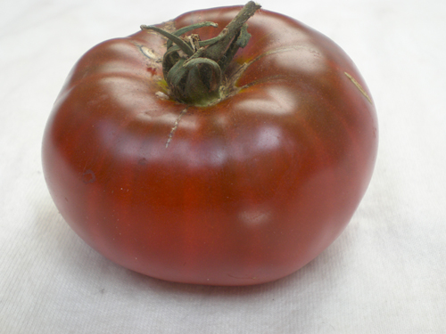 Плодовете са плоски кръгли, с бузи. Незрелият домат е зелен на цвят, с тъмно петно в основата. Когато узрее, той става тъмночервен, с шоколадов оттенък, особено забележим близо до дръжката. Пулпът на сорта е тухленочервен, месест, сочен, многокамерен (има повече от 6 камери), но гнездата на семената са малки, с малък брой семена. Консистенцията на пулпата е доста плътна. Вкусът е отличен. Пулпът е ароматен, много сладък; фината стипчивост придава пикантност на вкуса. Освен това нашият герой побеждава с едроплодни. Масата на доматите е от 200 до 300 грама.