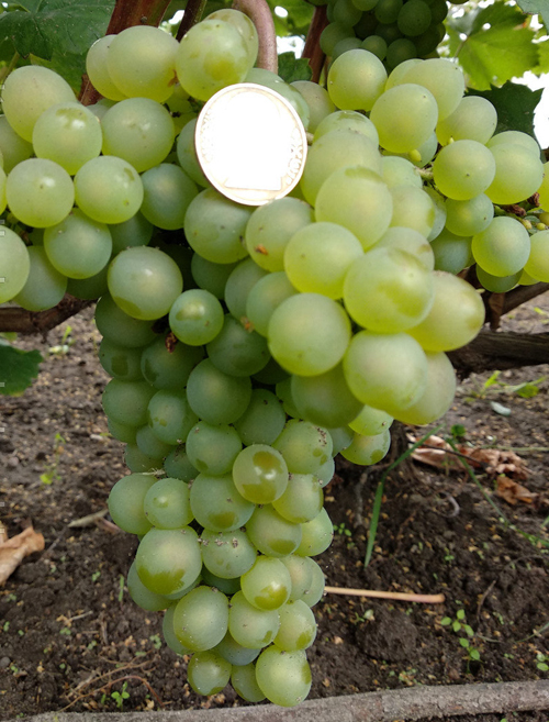 Гроздовете са доста големи за технически сорт, достигайки маса от 200 грама или повече. Формата им е конична или цилиндрично-конична, плътността им е умерена. Гребенът е със средна дължина, крехък, добре се отчупва по време на беритбата. Плодовете са със среден размер, леко овални, бели или жълто-зелени при добра светлина, покрити с тънък слой белезникав восъчен слой. Средното тегло на сто плода е 150-210 грама.Пулпът е нежен, сочен, с отличен сладък вкус, без специфични аромати. Захарност на сок от горски плодове по време на техническа зрялост - 17-18 грама / 100 кубически метра. см, киселинност - 6-7 грама / куб. дм. Производството му е до 80% от масата на реколтата. Гроздето се отличава с рязко намаляване на киселинността по време на презряването и значително натрупване на глюкоза и фруктоза. Кожата е тънка, но здрава, в процентно изражение тя заема малка част от теглото на купчината. В зрънцето има 2-3 семена, те също заемат малка част от обема му.