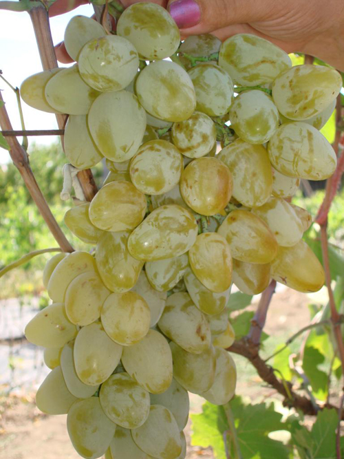 Един от тези популярни сортове е Monarch, получен в резултат на сложна хибридизация, при която първоначално цветята на кардинала се опрашват със смес от цветен прашец от различни сортове, а след това получената хибридна форма се използва като бащина форма в двойка с известния Талисман... Резултатът е хибрид от грозде с изключителни размери на горски плодове, почти сливов калибър, с красив златист сламен цвят с червеникав загар на слънце. Освен това новият сорт има висок добив, добро натрупване на захар, много приятен вкус и повишена устойчивост на замръзване.